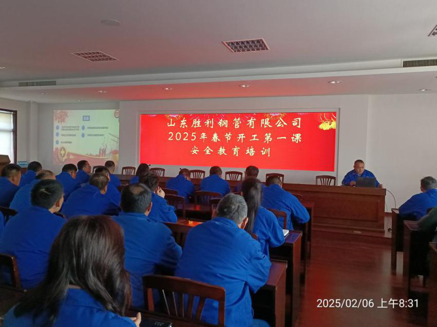 ?為確保春節(jié)節(jié)后安全復(fù)工復(fù)產(chǎn)、順利開機(jī)生產(chǎn),2025年2月6日,上班第一天,山東勝利組織了2025年“開工第一課”專題安全教育培訓(xùn),總經(jīng)理張圣光進(jìn)行了授課,公司所有管理人員、技術(shù)人員、財(cái)務(wù)人員參加了面授,各生產(chǎn)崗位人員以收看現(xiàn)場(chǎng)直播的方式參加培訓(xùn),淄博市高新區(qū)工信商務(wù)局安監(jiān)辦工作人員進(jìn)行了全程監(jiān)督。