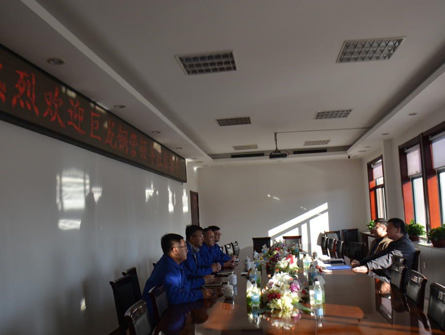 ?12 月 3 日,巨龍鋼管有限公司董事長兼總經(jīng)理吳亞東率領(lǐng)銷售管理團隊到訪山東勝利。公司董事長趙增強、總經(jīng)理張圣光及相關(guān)業(yè)務(wù)負責(zé)人熱情迎接了來訪貴賓。雙方圍繞市場趨勢、行業(yè)發(fā)展和多領(lǐng)域戰(zhàn)略合作等核心議題,進行了深入而友好的座談交流,并實地考察了預(yù)精焊分廠。